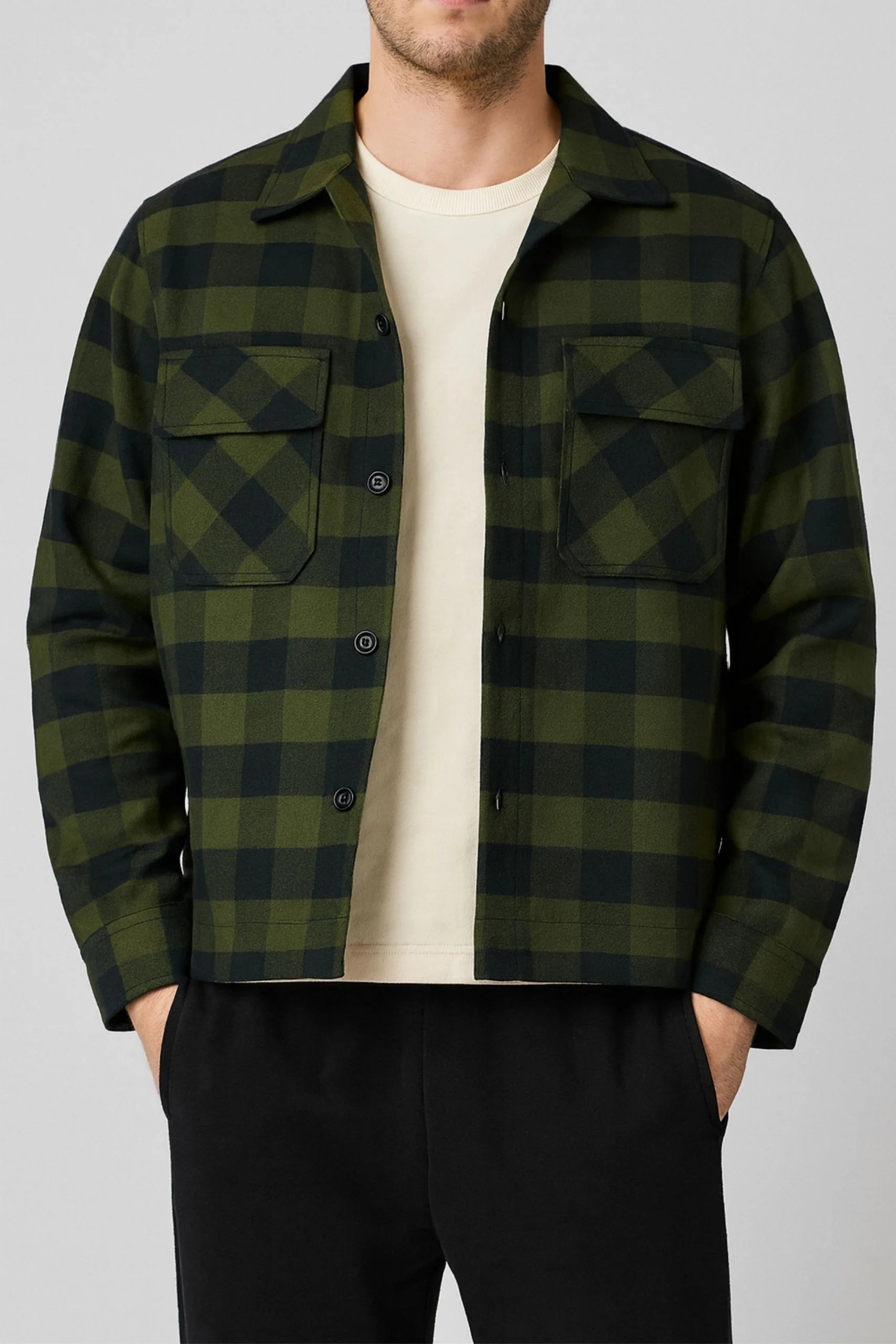 FLANNEL CHECKERED SHACKET | OLIVE