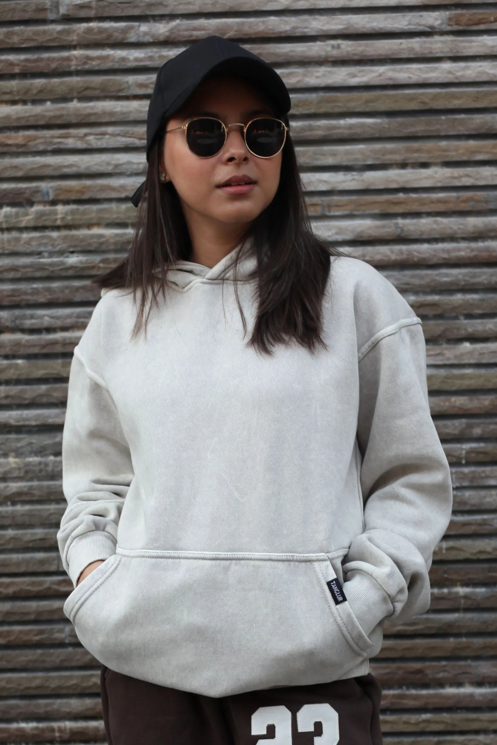 OVERSIZED STONE WASHED HOODIE | ASH WHITE